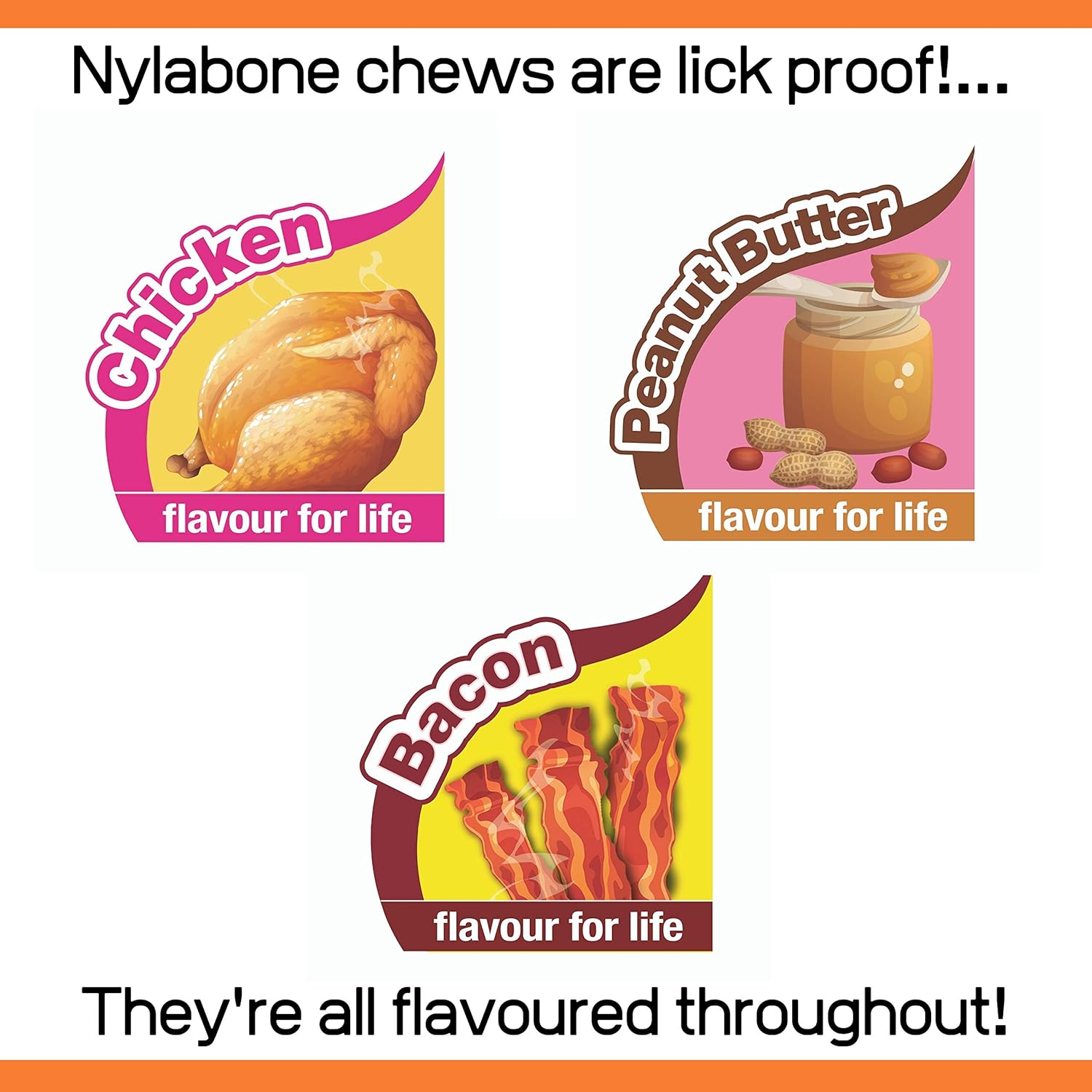 Nylabone Extreme Tough Dog Chew Toy Bones, Peanut Butter, Chicken, Bacon Flavoured, 3-Piece, Small, For Dogs Up To 11 kg